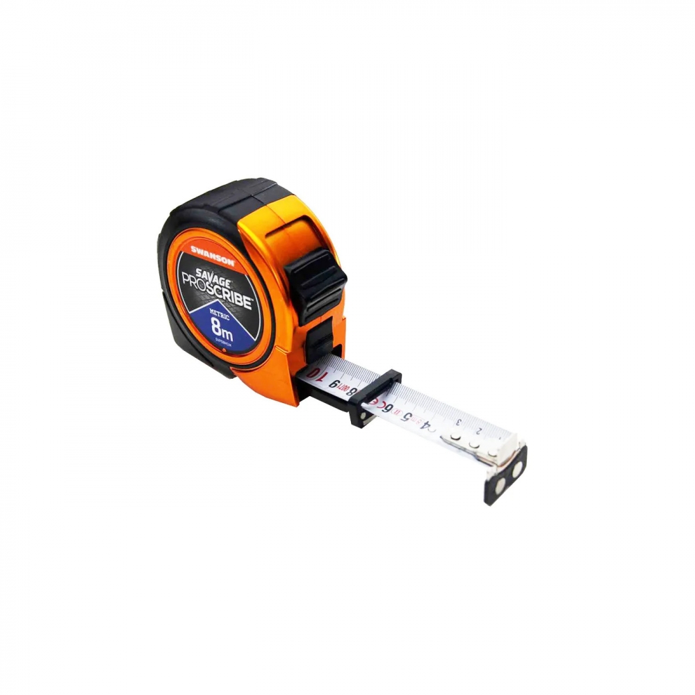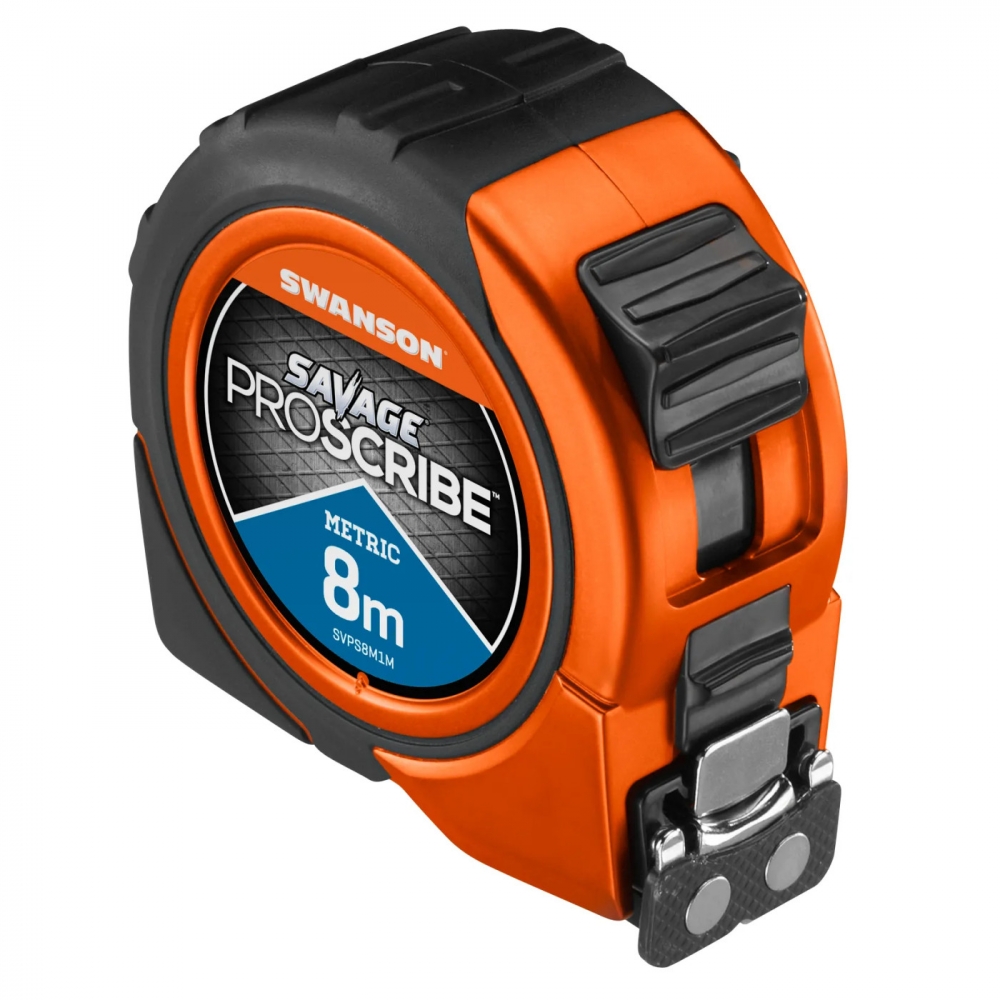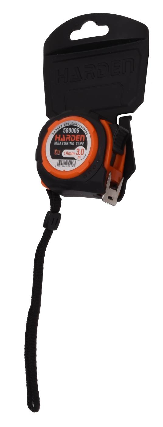 Slitesterkt målebånd med gummibelagt hus, justerbar endehake og håndleddsstropp. Båndet har 19 mm bredde og god lesbarhet. Oppmåling med dette målebåndet er raskt og nøyaktig.