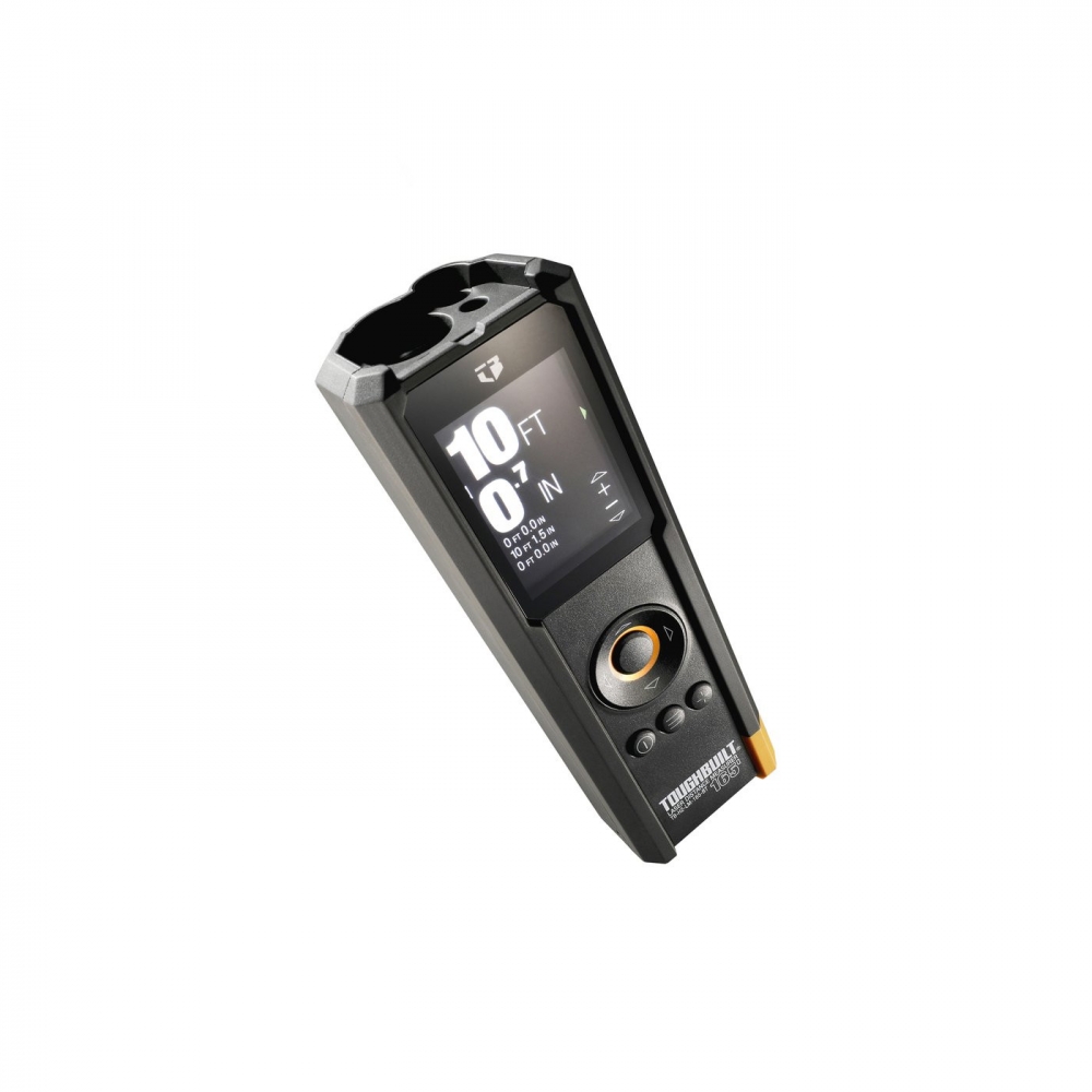 Robust laser avstandsmåler med bluetooth og en stor fargeskjerm med søker som viser målte avstander.
