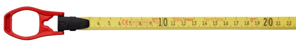 Målebånd med lengde på 20m og båndbredde på 13mm i et slitesterkt hus av ABS-plast med hull for montering av sikkerhetsline. Endehake med unik funksjon og båndbegynnelse type B.