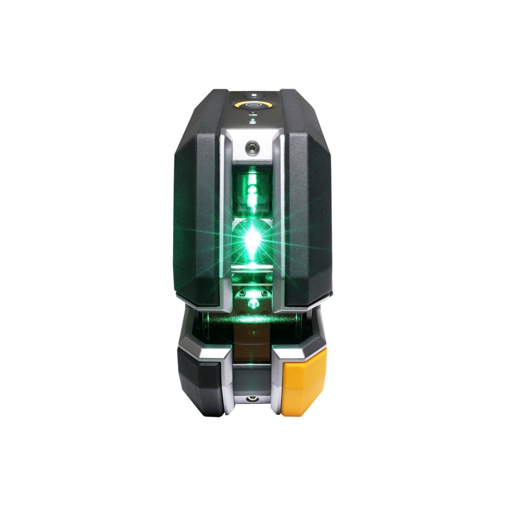 Grønn krysslaser med tre stykk 360° projeksjoner, perfekt for oppgaver som rørleggerarbeid, flislegging, tapetsering og for markering av referansepunkter i tak og gulv ved plassering av bjelkelag og vegger.
