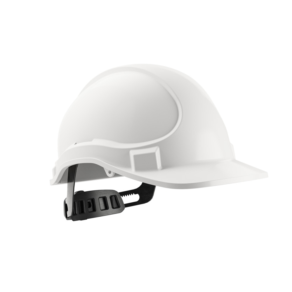 Allsidig vernehjelm med et velprøvd design som har et slitesterkt ABS-skallmateriale og 6-punkts hodebånd med justeringshjul som gir utmerket komfort og vektfordeling, spesielt når de kombineres med tilbehør som ansikts- og hørselsvern.