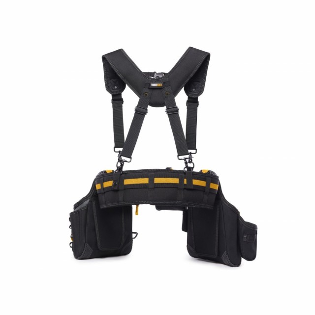 Hver slitesterke veske har en integrert støtte som lar vesken stå av seg selv på gulv, bord eller nesten alle flate overflater. For langvarig komfort og støtte inkluderer 5-delers Pro Contractor Rig Set et polstret belte med kraftig spenne og polstrede seler, 36 tilpassede lommer og løkker, inkludert 6 lommer med stor kapasitet konstruert med No-Snag Hidden-Seam-design. Det er også en lomme til notatbok, en lomme til hurtig firkant, en separat lomme til målebånd, en ekstremt slitesterk hammerløkke og 2 målebåndklips. 6-lags konstruksjon og sterk nagleforsterkning gir dette verktøybeltet den tøffheten og holdbarheten som trengs for å tåle de tøffeste arbeidsforholdene.