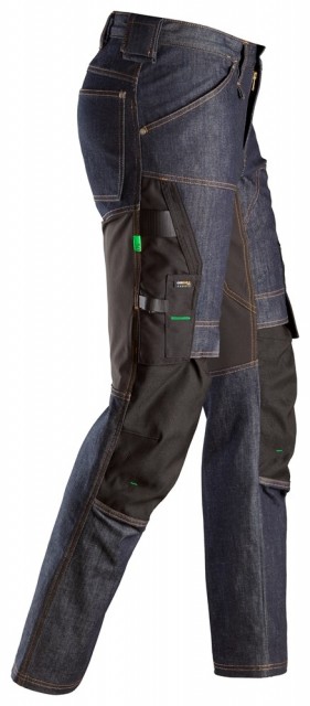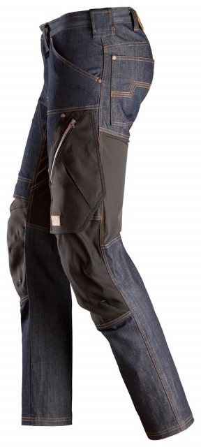 Fleksibel arbeidsbukse i denim med smal passform, utviklet for krevende arbeidsforhold. Slitesterkt denim-materiale kombinert med kroppstilpassede stretchpaneler sikrer slitestyrke og bevegelsesfrihet, og knebeskyttere som er sertifisert i henhold til EN 14404 sikrer pålitelig beskyttelse. I tillegg har arbeidsbuksen verktøyholdere og lårlommer med rom med glidelås.