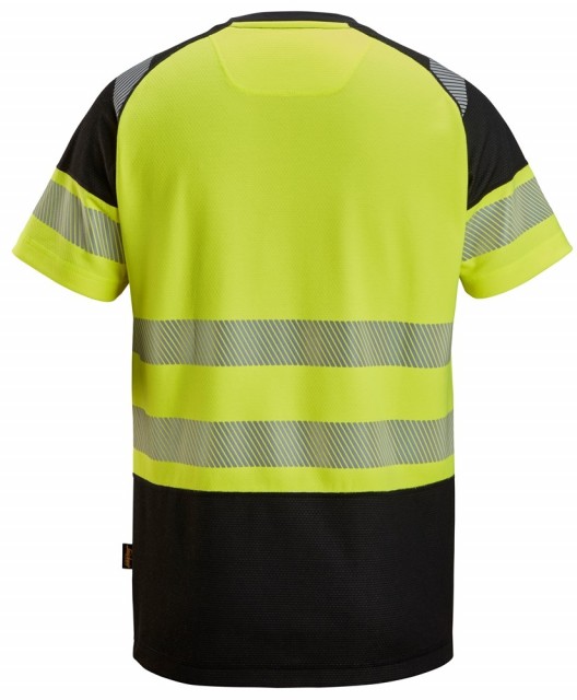 Allsidig high-vis t-skjorte i dobbeltvevd materiale med myk bomull på innsiden og slitesterk polyester samt varmeforseglet segmentert refleksbånd på utsiden. Resultatet er et slitesterkt, men likevel behagelig plagg med synlighet i klasse 1, godkjent i henhold til EN ISO 20471. I tillegg har t-skjorten raglanermer for bedre bevegelighet og strategisk plasserte smussområder for lengre levetid.