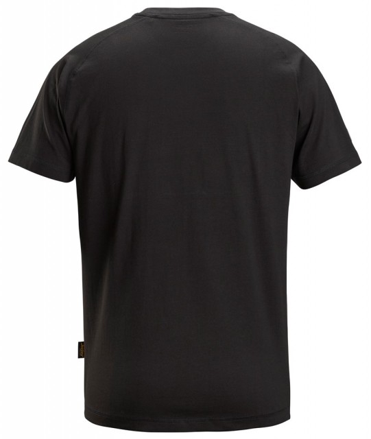 Behagelig t-skjorte til hverdags med raglanermer for bedre bevegelighet, ribbestrikket halslinning og opphøyd, trykt Snickers Workwear-logo på brystet.
