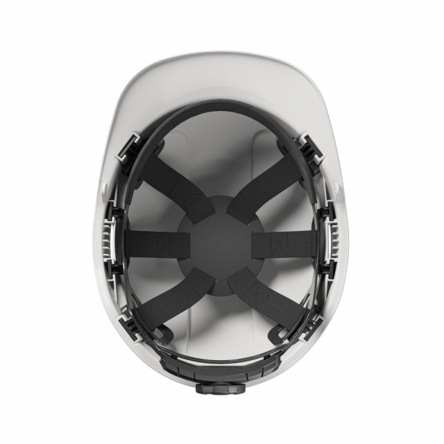 Opplev utmerket komfort og vektfordeling med et 6-punkts elastisk hodebånd, som sikrer forlenget bruk når det kombineres med tilbehør som ansikts- og hørselsvern.