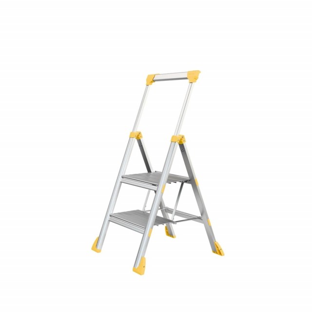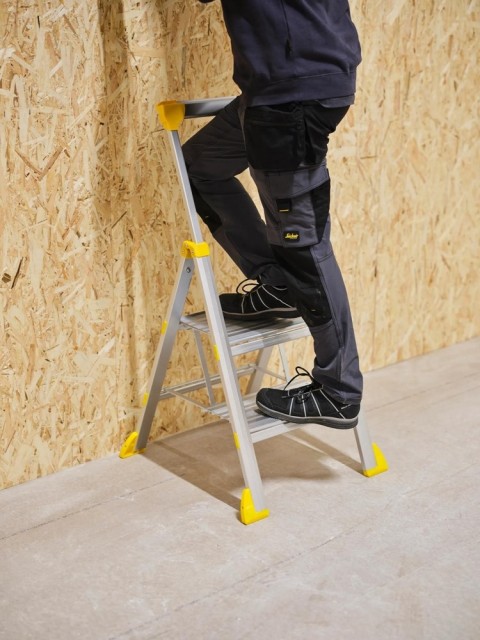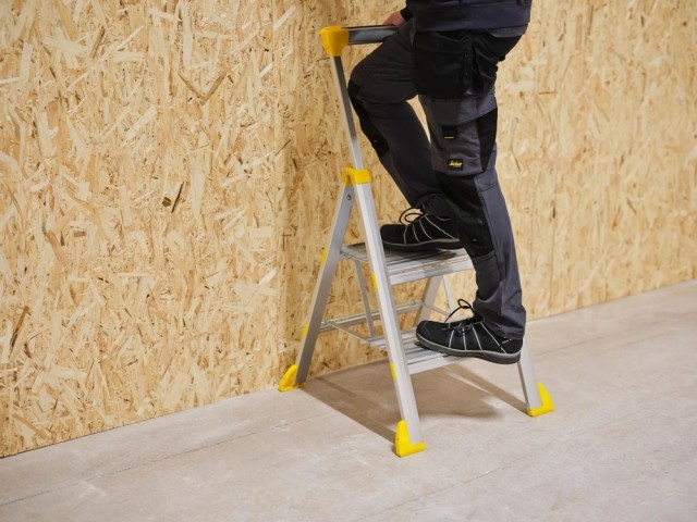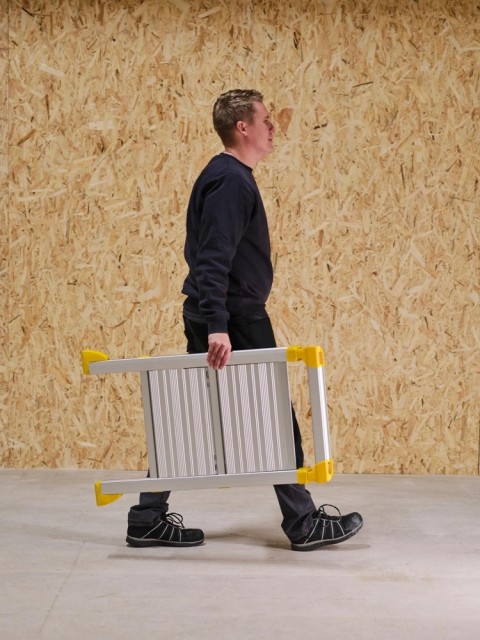 Den slankeste arbeidsbukken for proffbruk. Vikingstep Pro R er en arbeidsbukk med ekstremt kompakt design – kun 45–55 mm tykk når den er sammenfoldet. Den kombinerer stabiliteten til en arbeidsbukk med det kompakte, mobile designet du kjenner fra en liten gardintrapp, og er utviklet for profesjonelle som trenger en trygg og plassbesparende løsning. Dette er den perfekte proffstigen for vaktmestere, elektrikere, serviceteknikere og håndverkere som er mye i bevegelse i løpet av arbeidsdagen. Den lette og slanke aluminiumskonstruksjonen gjør den enkel å bære i trapper, gjennom døråpninger og andre trange passasjer. Den kompakte og plassbesparende utformingen gjør det også enkelt å oppbevare stigen i alle typer kjøretøy. Håndlisten og de dype trinnene gir tryggere klatring og bedre balanse, slik at du kan jobbe mer effektivt. Rekkverket kan skyves ned for enkel transport og lagring, og har i tillegg en holder for el-verktøy. Bruk sporet på toppen til små verktøy og skruer mens du jobber. Godkjent i henhold til europeisk standard EN131, Arbeidstilsynets forskrifter for stiger og arbeidsbukker, samt den svenske merkingen for sikrere stigeprodukter «Bra Arbetsmiljöval».