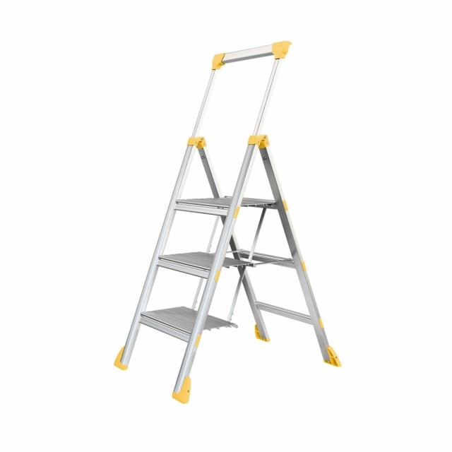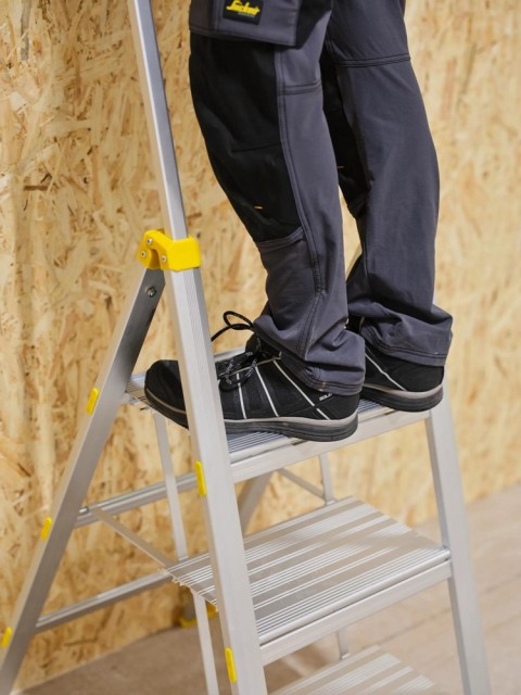 Lett og tynn proffstige med teleskopisk rekkverk med verktøyholder gjør dette til den perfekte stige for håndverkere som er mye i bevegelse i løpet av arbeidsdagen.