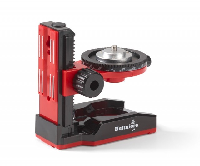 Universalholder til våre lasere. Holderen er justerbar i høyden og kan dreies 360°, som gjør justering av laseren enklere. Magneter gjør det enklere å sette fast laseren. Den har hull til oppheng på skrue eller spiker. Hultafors UH kan brukes til de fleste lasere med ¼” feste og kan med fordel brukes til Hultafors HXL og PXL.