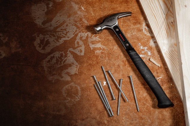Ergonomisk utformet hammer, smidd i ett stykke for økt slitestyrke med vibrasjonsdempende uretanplugg. Tynn, sterk klo som gjør det enklere å komme til uten å etterlate merker. Kloens åpning og vinkel gir beste mulige grep rundt spikeren. Ergonomisk utformet håndtak med tydelig endestopp som gir et sikkert grep.