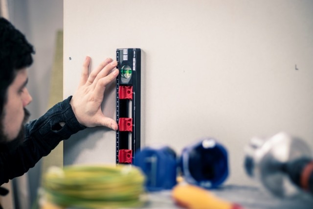Den C-formede aluminiumsprofilen har endestykker i plast og avstandsholdere av gummi som beskytter og hindrer at vateret glir på måleflaten. Glidemarkørene med gradert 71 mm midtavstand gir rask og nøyaktig posisjonering ved installasjon av bryter- eller koblingsbokser i henhold til DIN 49075.