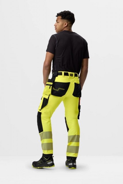 Fleksibel og slitesterk arbeidsbukse i High-Vis Gul klasse 2 med hylsterlommer, fireveisstretch og segmenterte trykte reflekser.