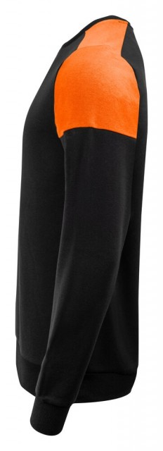 Tofarget genser med rund hals. Kontrastbånd i halsen. Børstet innside. 2x2 ribb i nederkant og i ermeavslutningene. Avrivbar halsetikett og separat vevd størrelsesetikett. I den indre venstre sidesømmen er det anordnet en lomme for å sy inn en vaskebrikke. Øko-Tex 100 sertifisert.