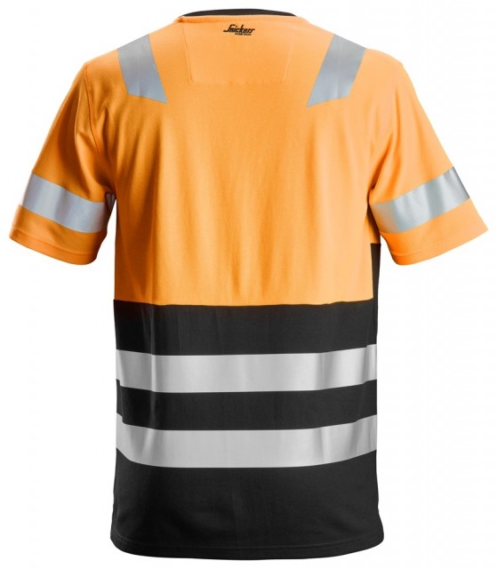 Allsidig high-vis t-skjorte i et dobbeltvevd materiale med 100 % bomull på innsiden, og 100 % polyester og elastisk refleksmateriale utvendig. Resultatet er et svært komfortabelt plagg som gir sertifisert synlighet i henhold til EN ISO 20471, klasse 1. T-skjorten har i tillegg flere smussområder.