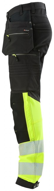 Hi-Vis-sertifiserte håndverkerbukse i klasse 1. Buksen er av stretchmateriale, og den tar arbeidskomforten til et nytt nivå. Her kombinerer vi maksimal bevegelighet med høy slitestyrke. Buksen er lett og smidig og har moderne design og kroppsnær passform som er utformet for å gi optimal komfort gjennom hele arbeidsdagen.